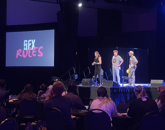 Sex Rules is an interactive, judgment-free program that uses humor, honesty, and evidence-based education to help students better navigate relationships, consent, communication, and personal boundaries.